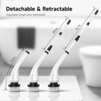 Elektrisk skrubber med 8 utskiftbare børstehoder og avtakbart forlengerskaft, kraftig roterende skrubber uten ledning